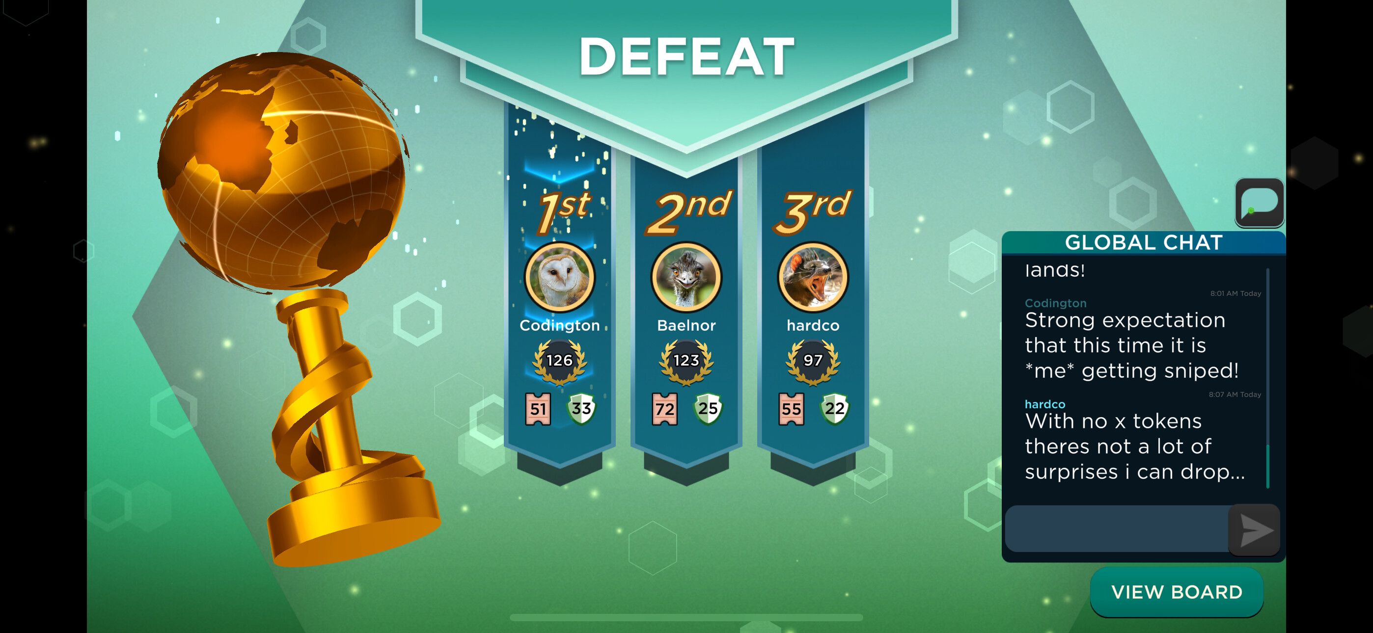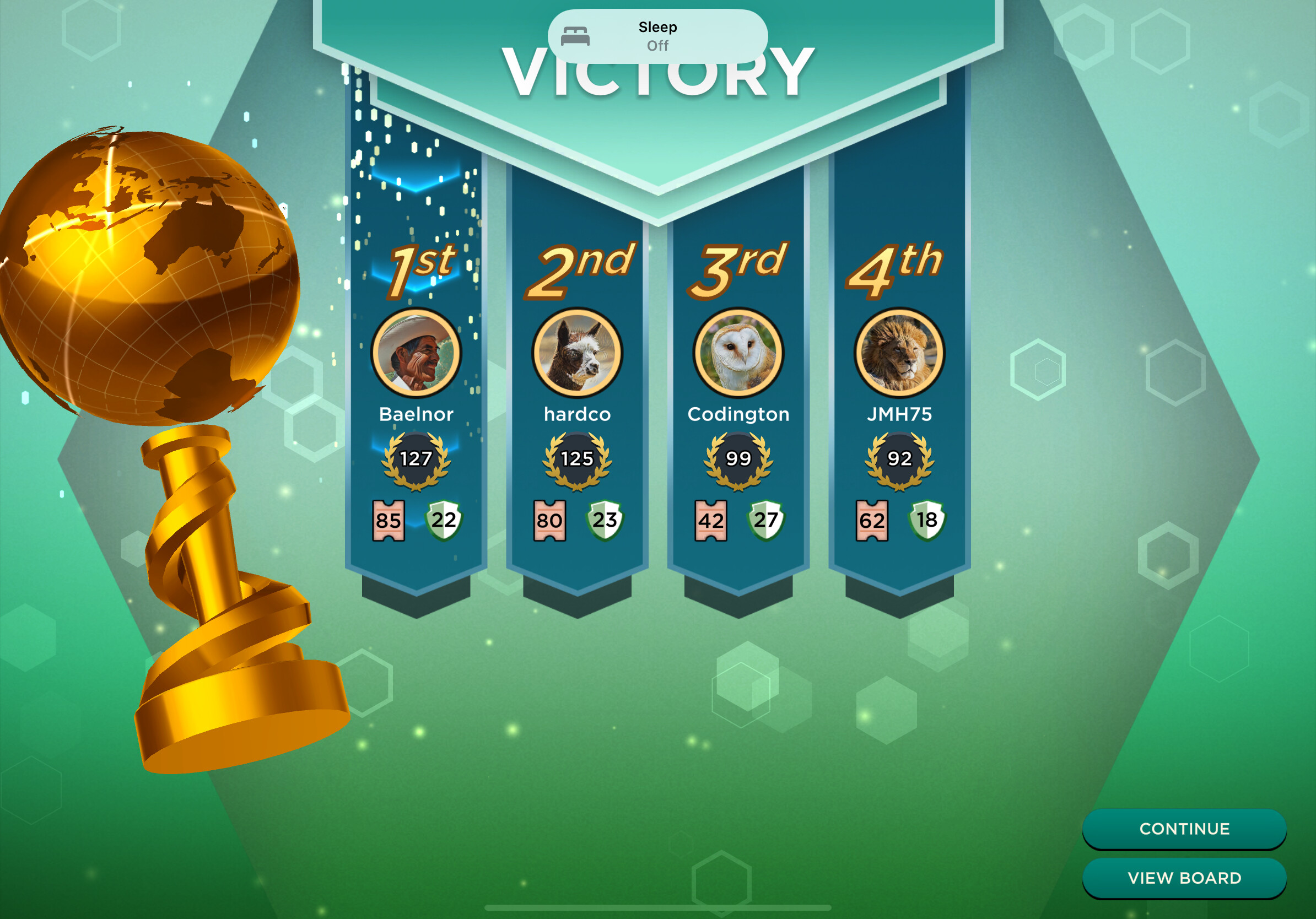 GG! I could see the end coming, just couldnāt quite get there with you (although I did finish with the most CP.)