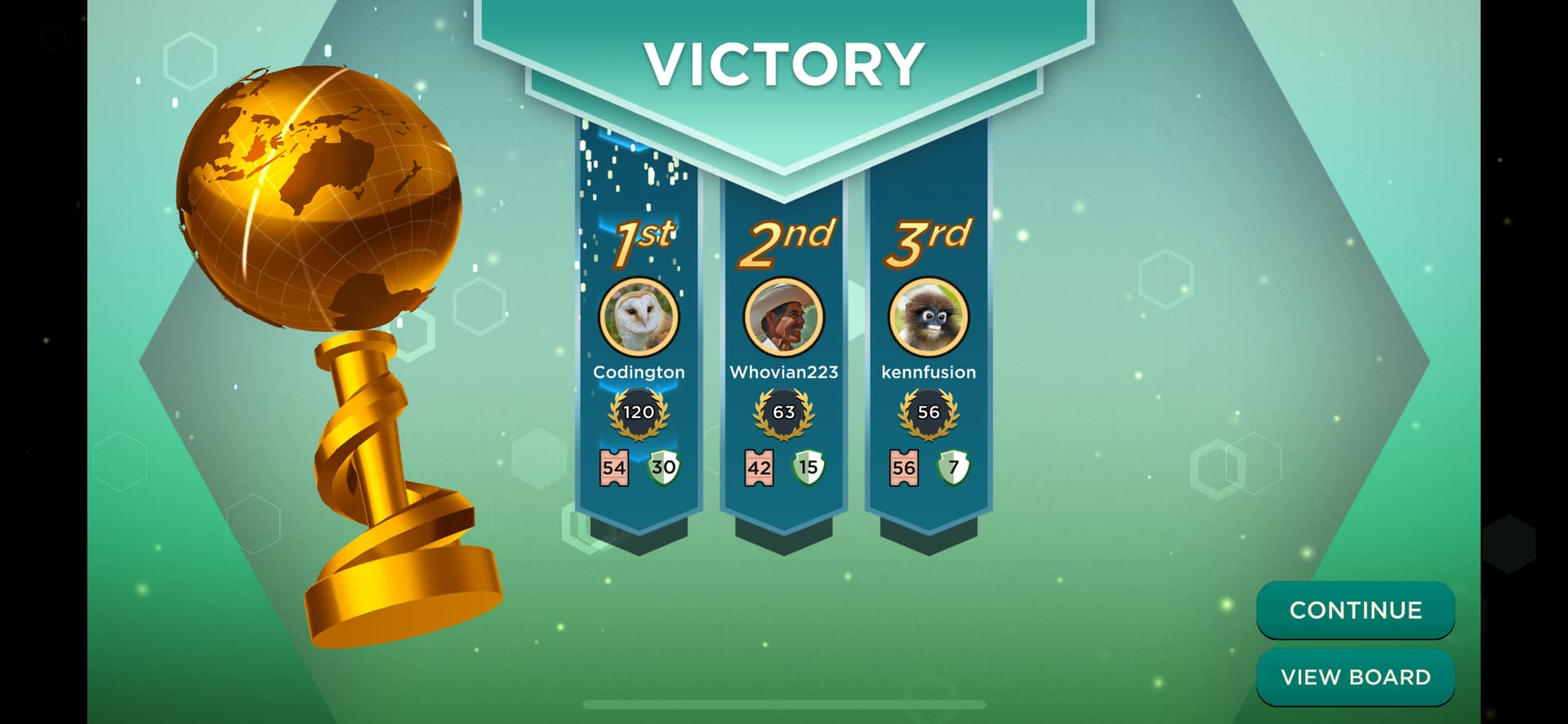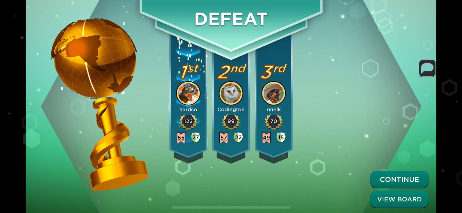 Yes, GG! Left myself 3 dollars short of a final build to cover my map… but that would only have netted me 8 more points (including an end of game bonus) so still wouldn’t have been enough. Congrats @kennfusion !