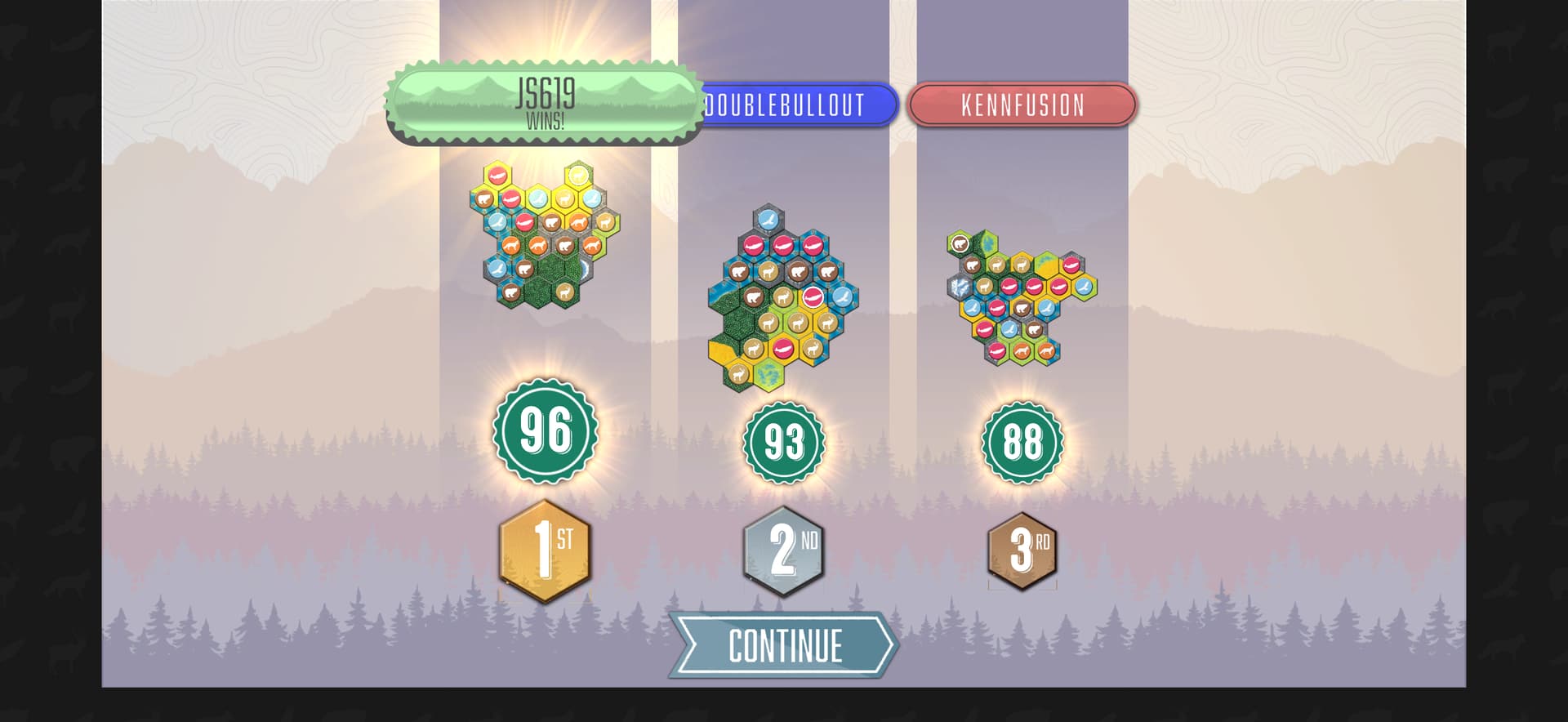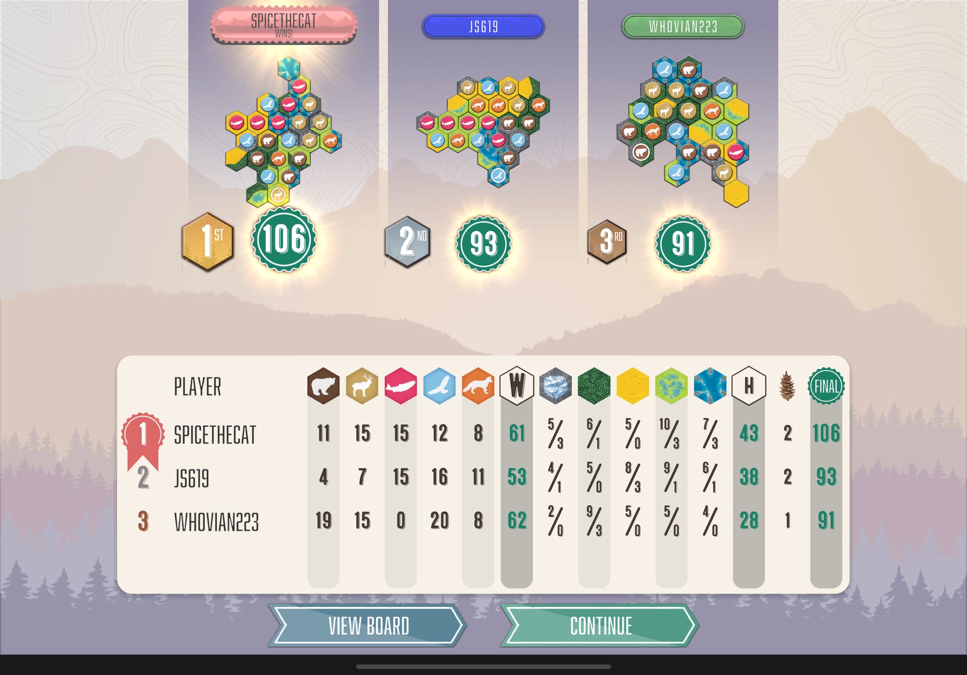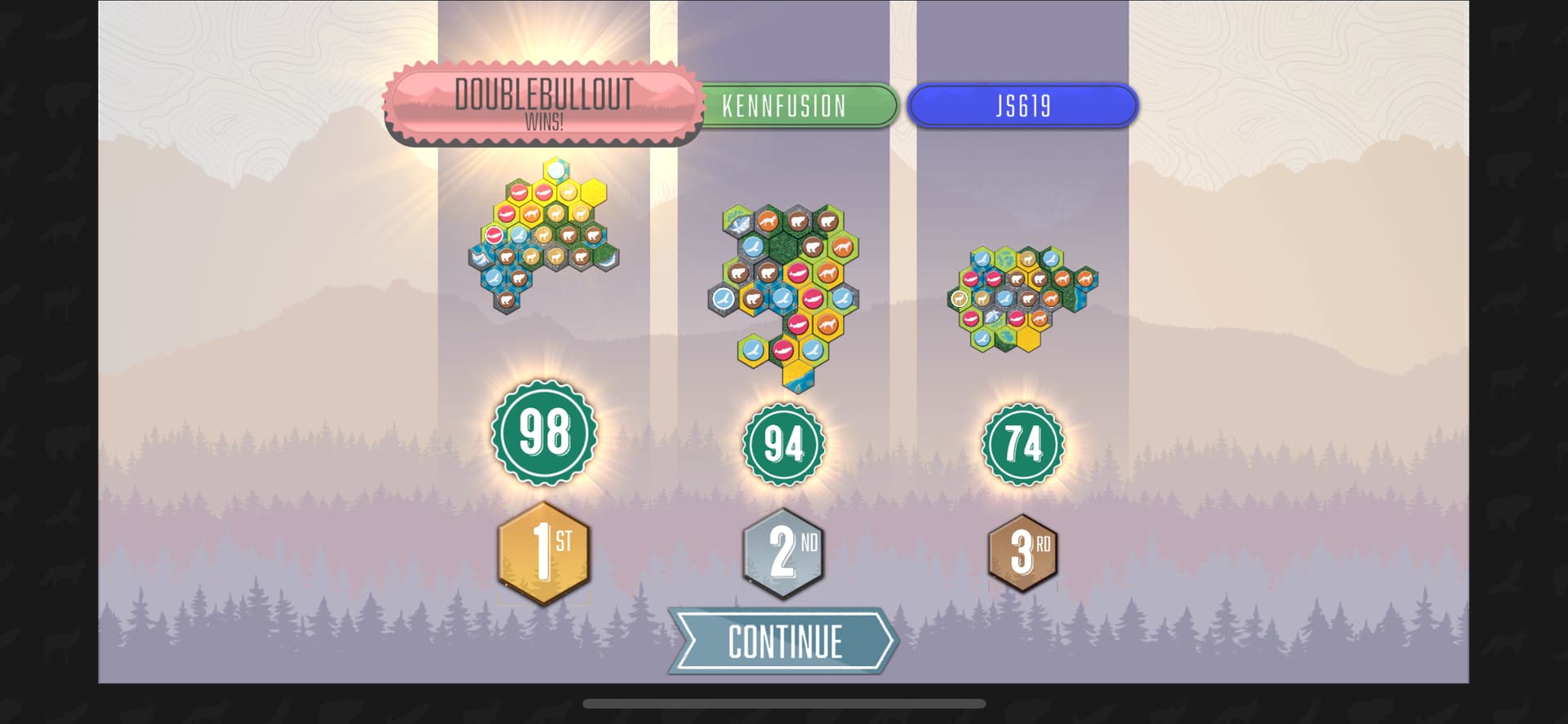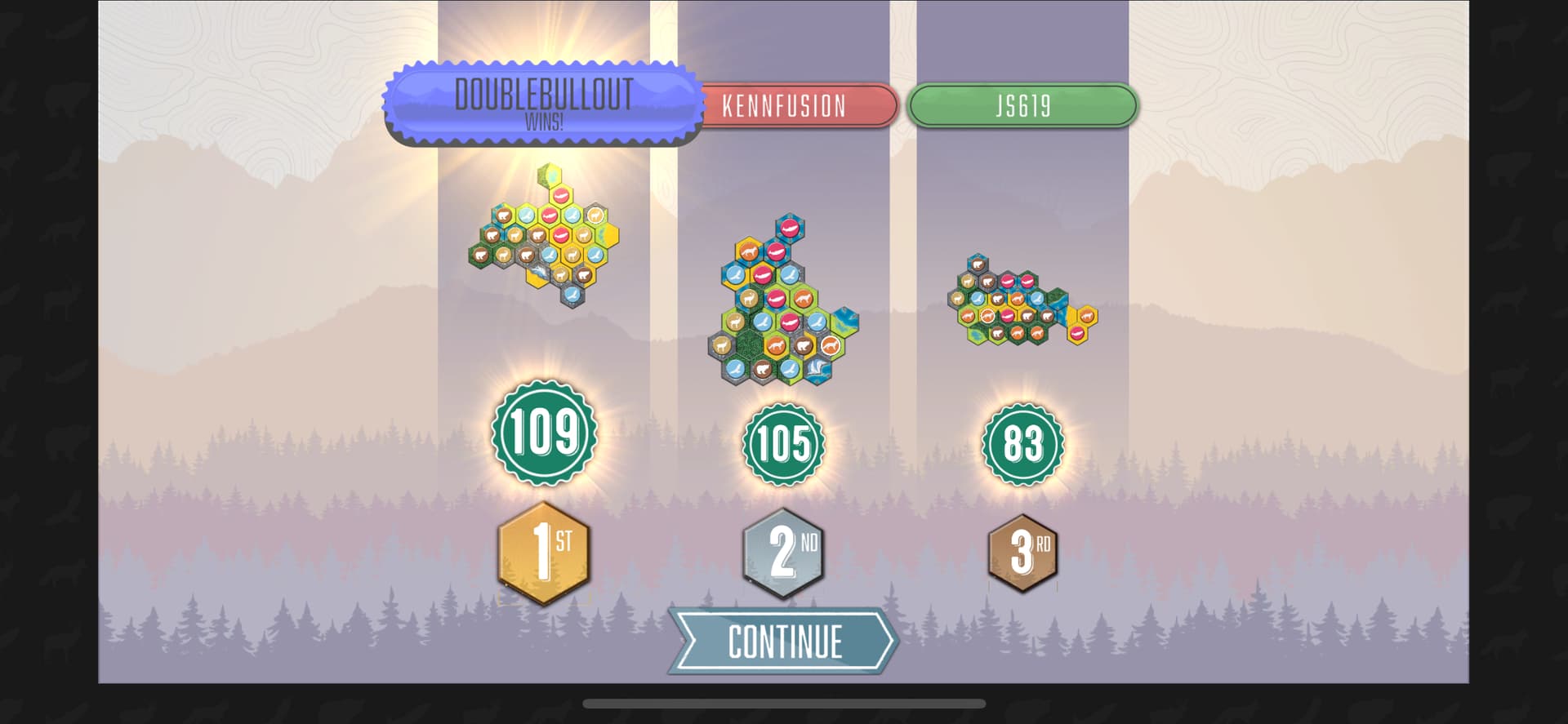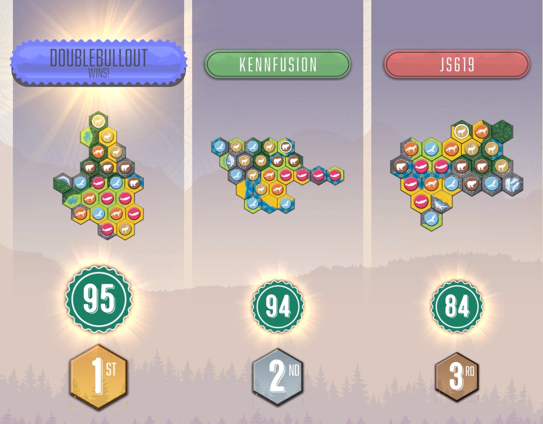 GG! Got lucky on the next-to-last turn animal draw with the 6th bear I needed.