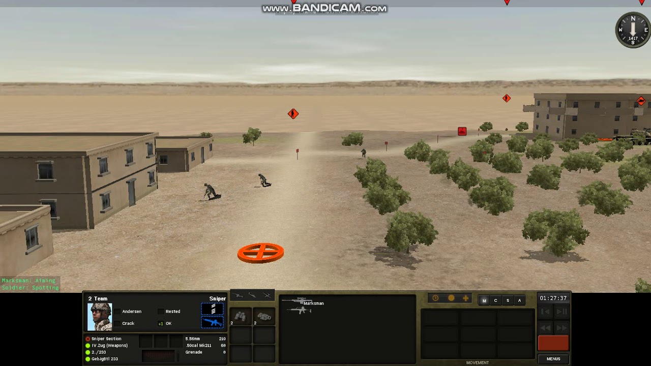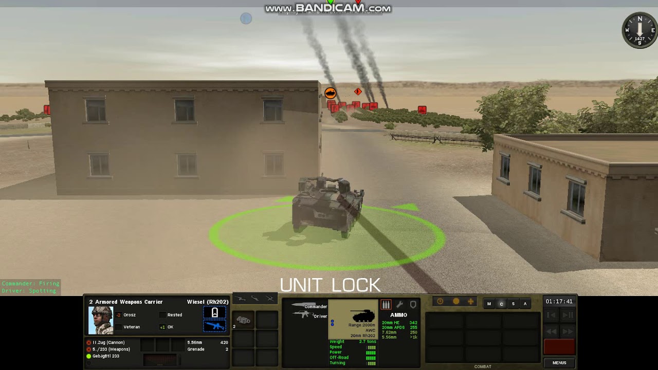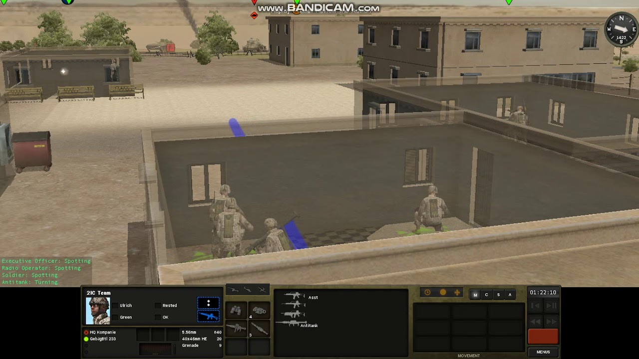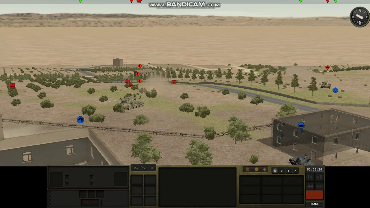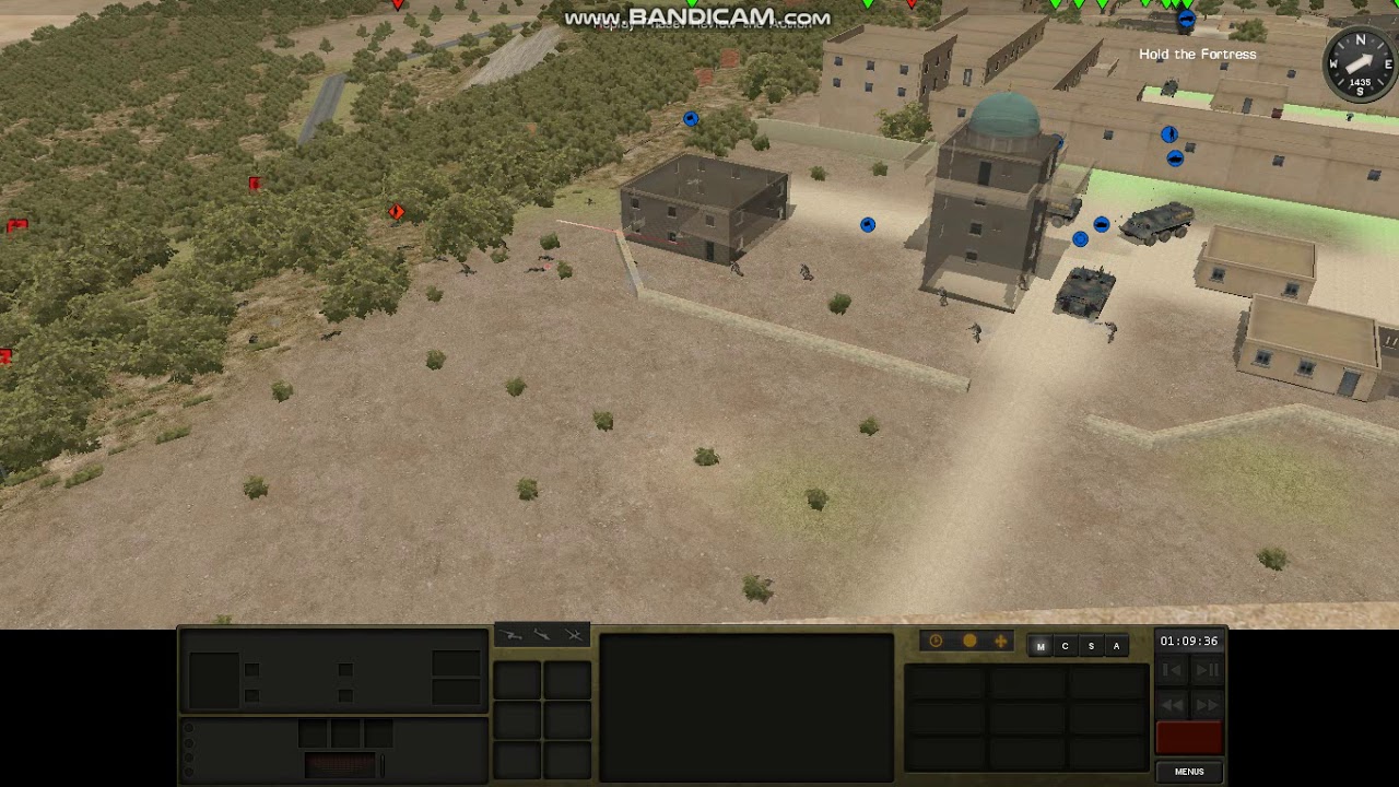 Marder 1 reaches the west side of the castle. The Panzergrenadier HQ and sniper team jump out and hit the ground running, in perfect time to help rebuff another Syrian attempt on the NW building.
