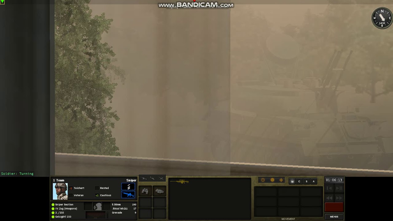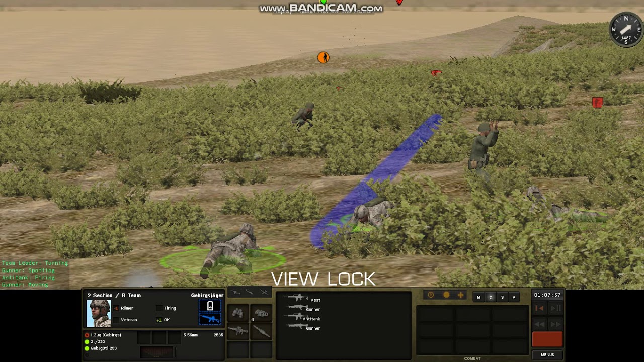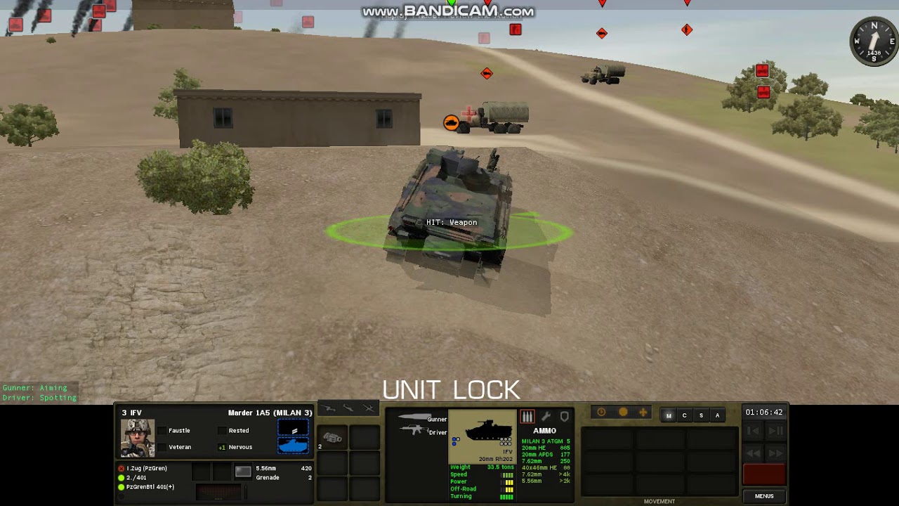 Enemy small arms fire wounds the Marder commander, but the gunner lights up several trucks regardless. With the vehicle commander down, awareness will be reduced, and the Marder will be less likely to spot targets. Good thing Thor and Loki are not far behind.