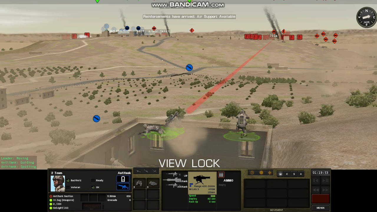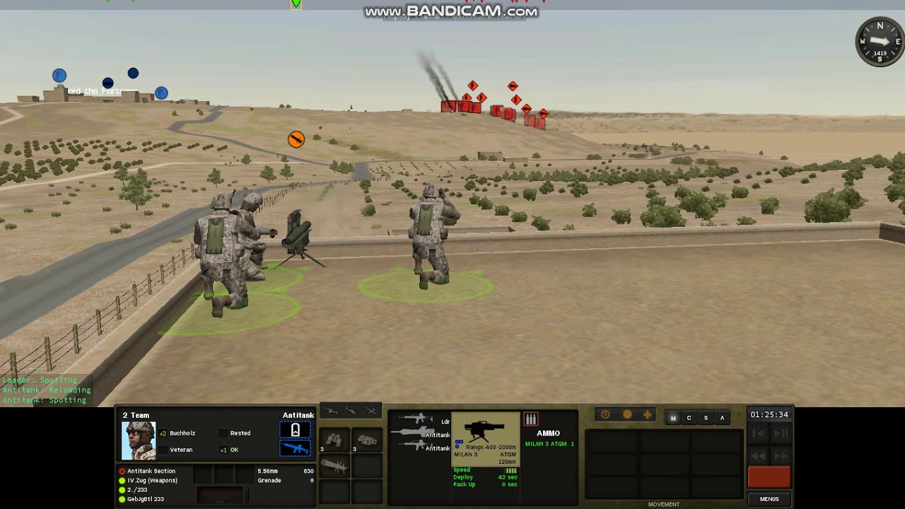 Hopefully some quick Milan kills will ensue, and the Panzergrenadier platoon can jump off directly into my position. Marders 2 and 3 are hanging back, providing cover.