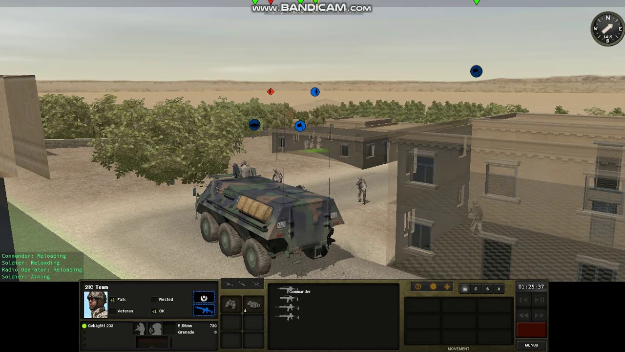 Vali, freshly ammoed, jumps out of the APC and joins Bagi in the NW corner building, running up to the first floor and hopefully spotting some Syrians fleeing uphill, away from Freyr platoon.